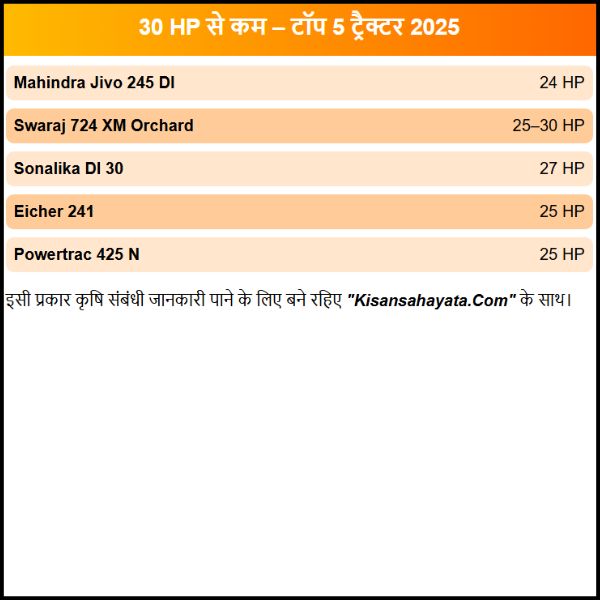 किसानों के लिए टॉप 5 ट्रैक्टर 30 HP से कम?